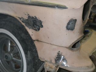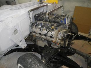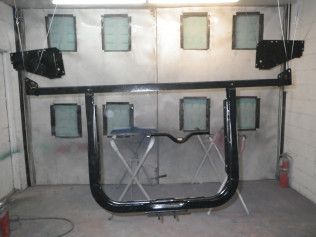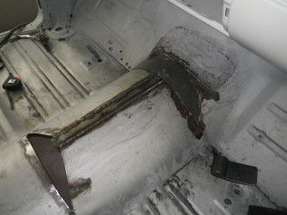 Aftermarket crossmember kit that doesn't fit properly. Will slot holes to straighten.