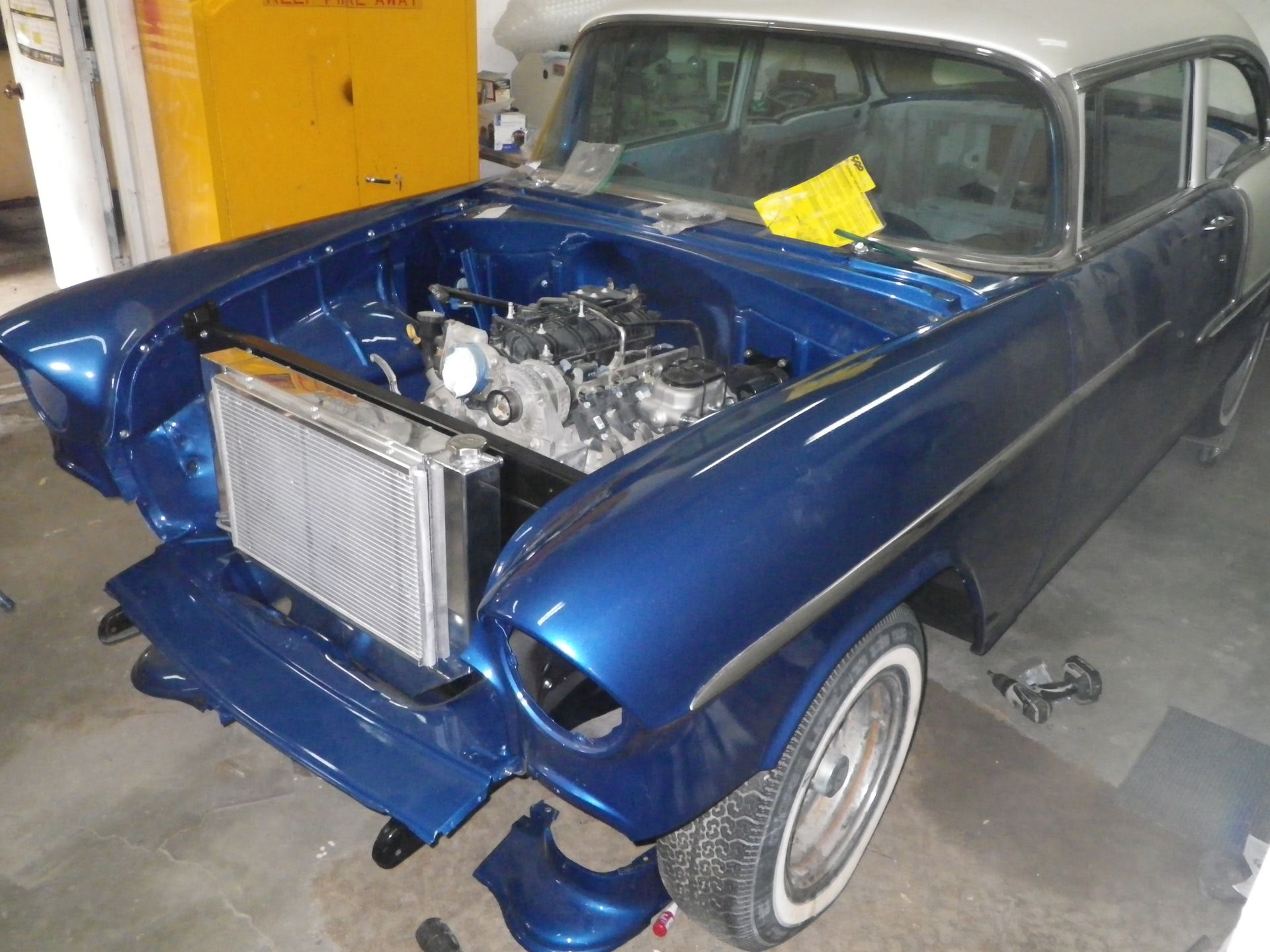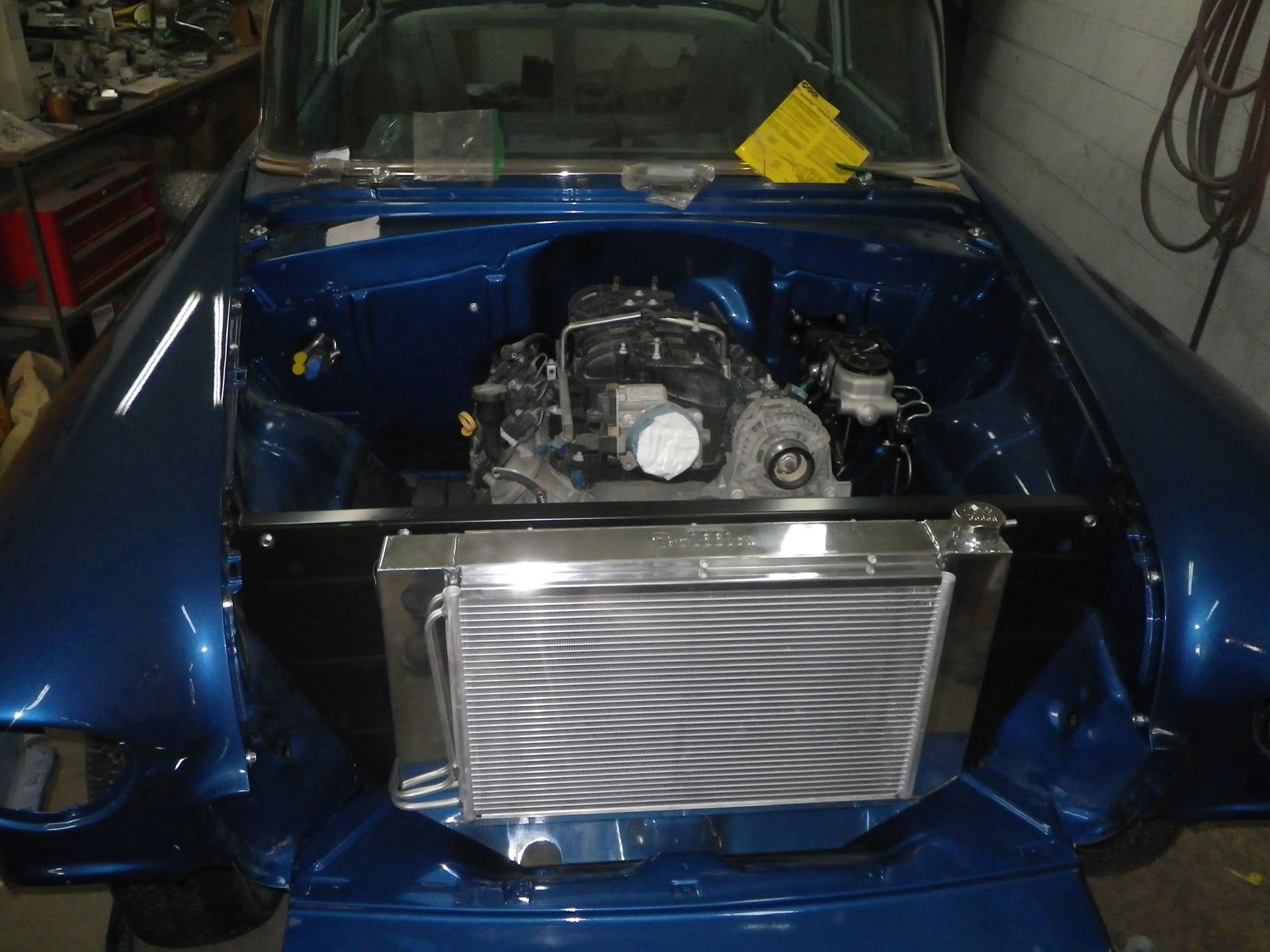 Radiator has to come out again to trim the support to move the radiator rearward so the splash pan will fit.