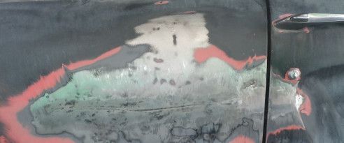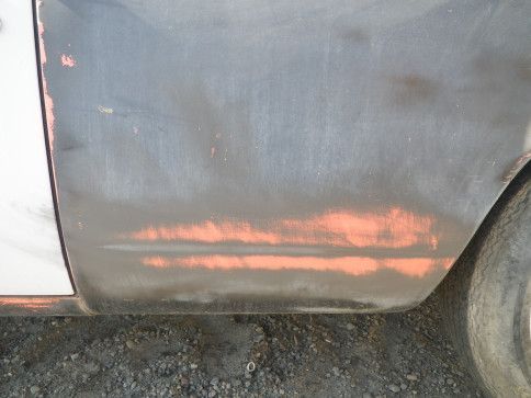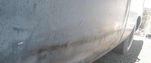 deep crease and tear in passenger door and quarter panel
