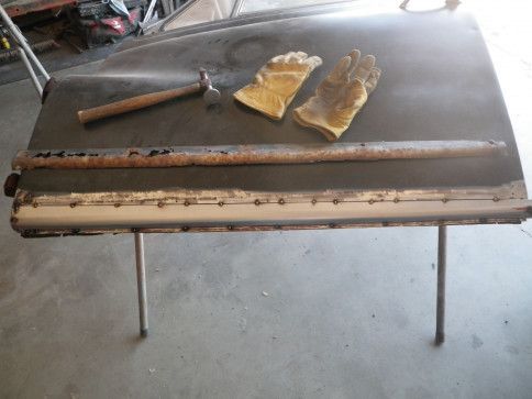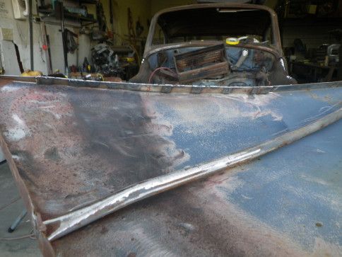 Hood was pretty flimsy, so I welded in some reinforcement strips on both edges.