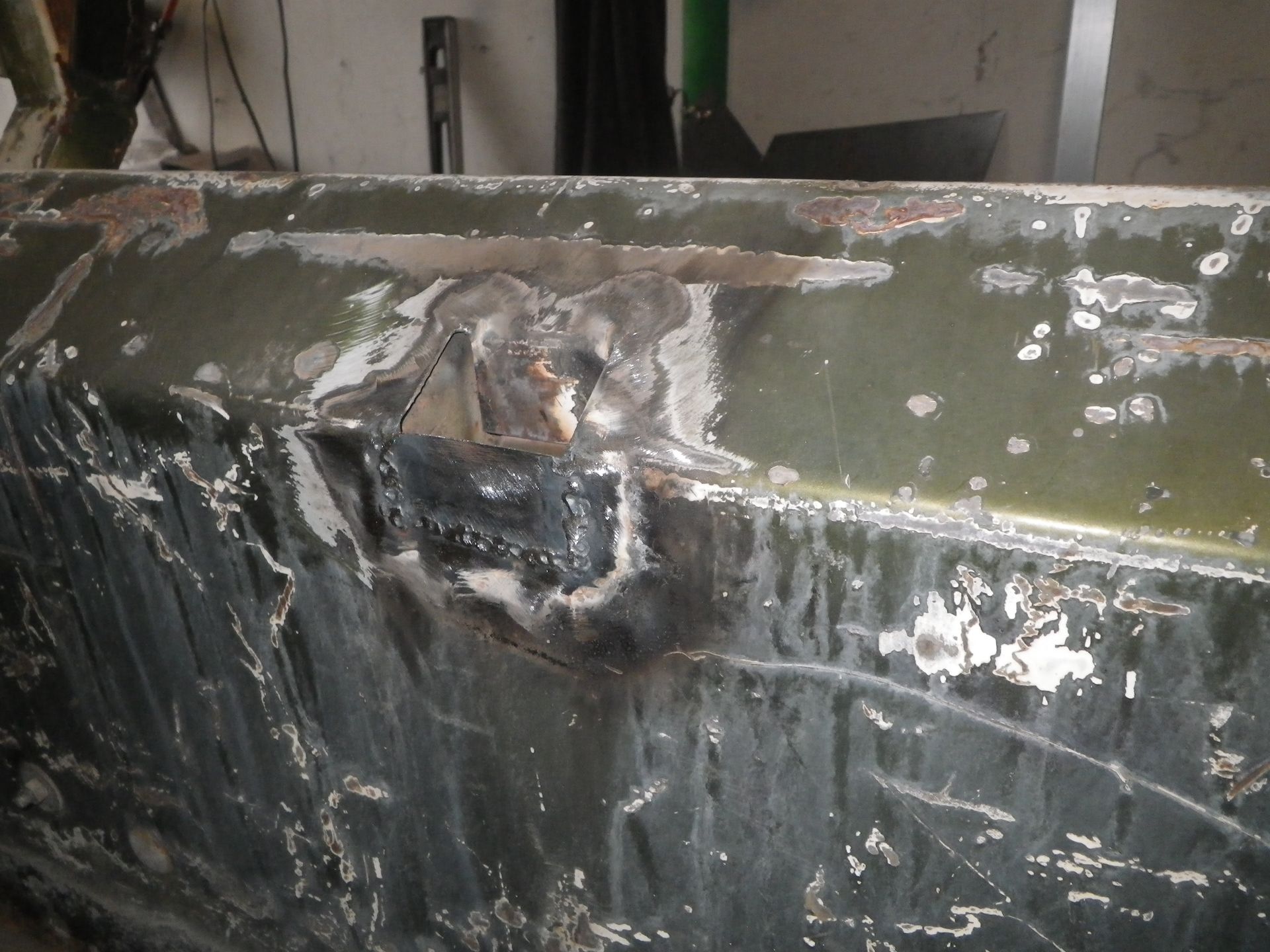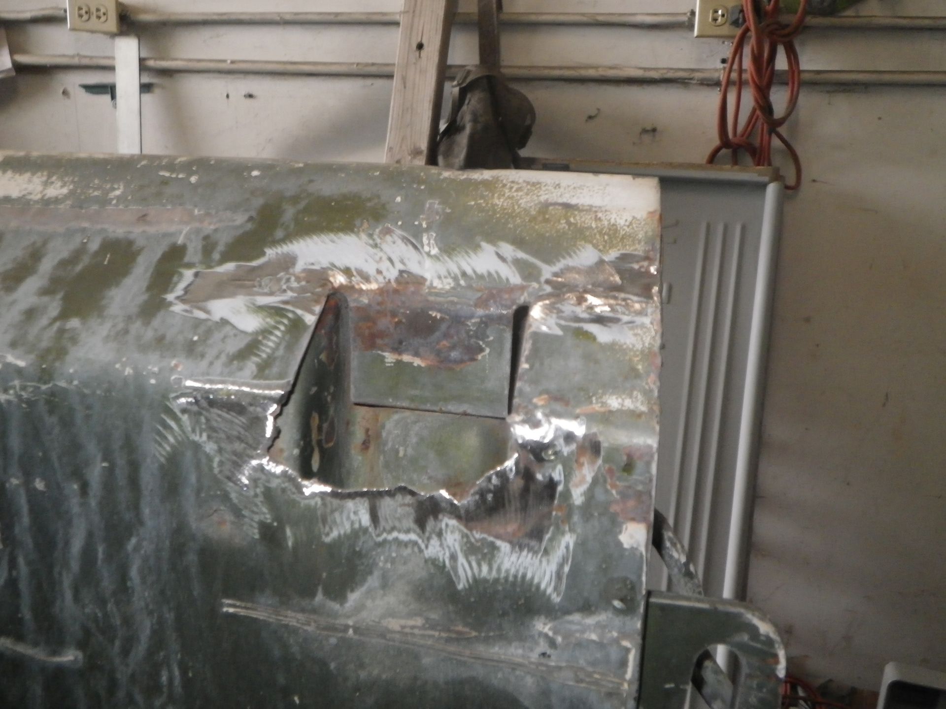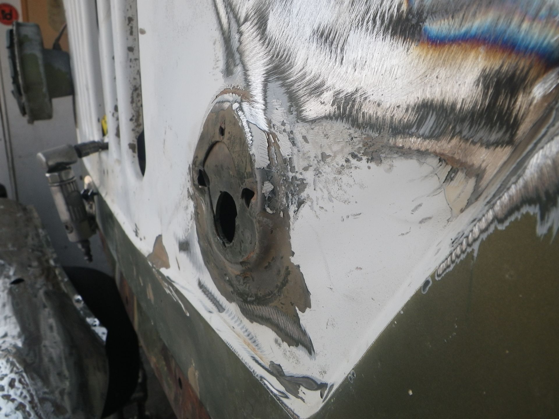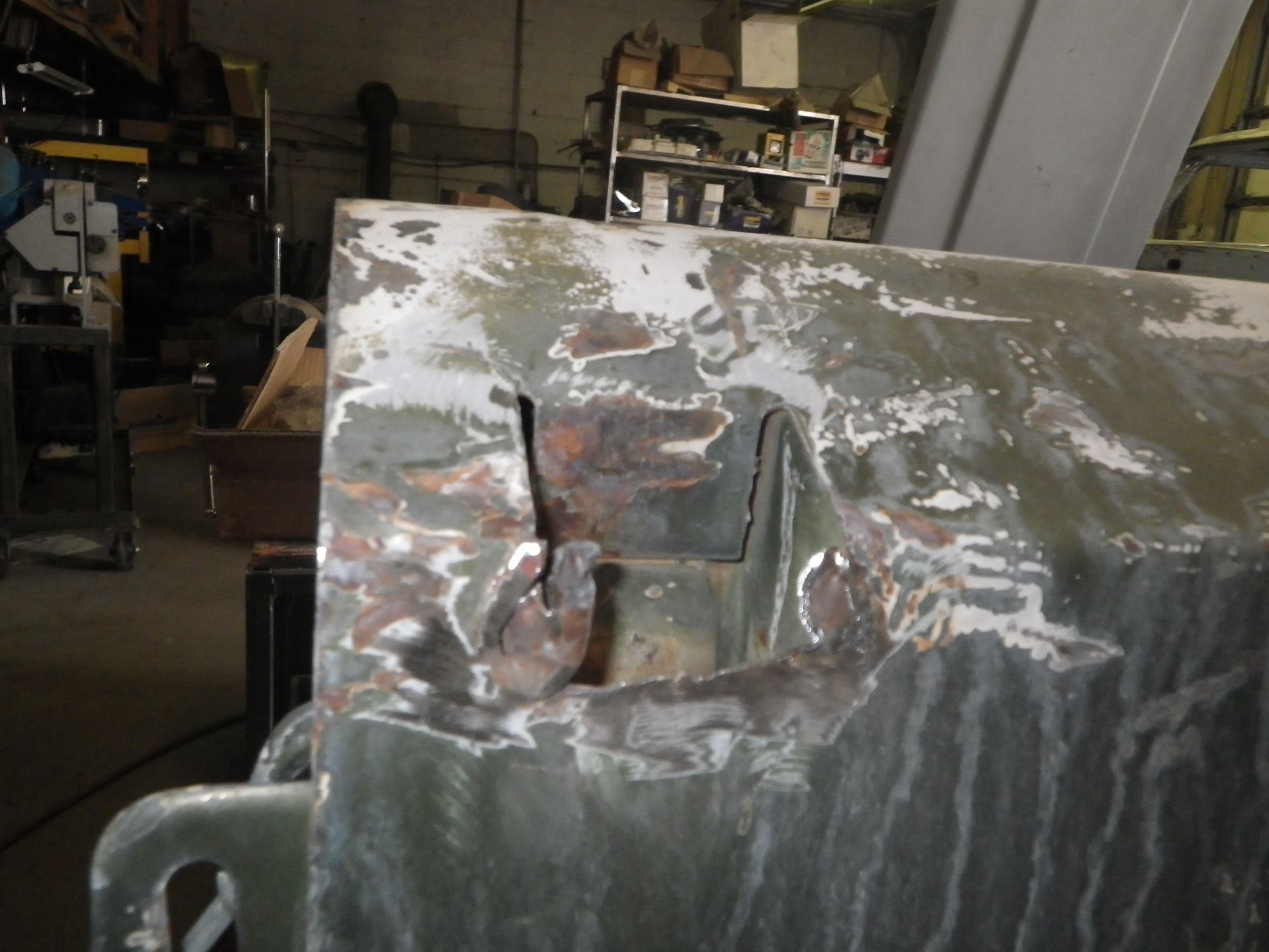 3 post holes with chunks missing.. will square up the holes and weld new pieces in.