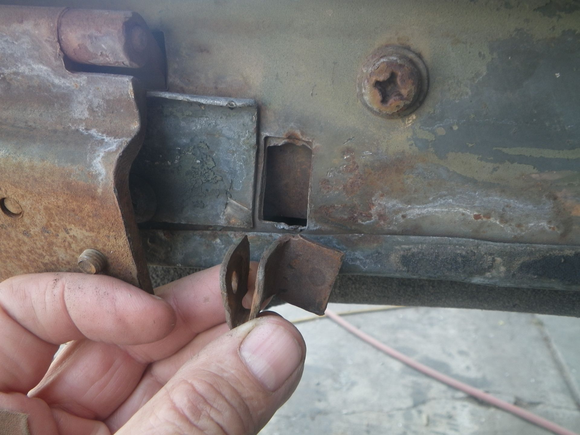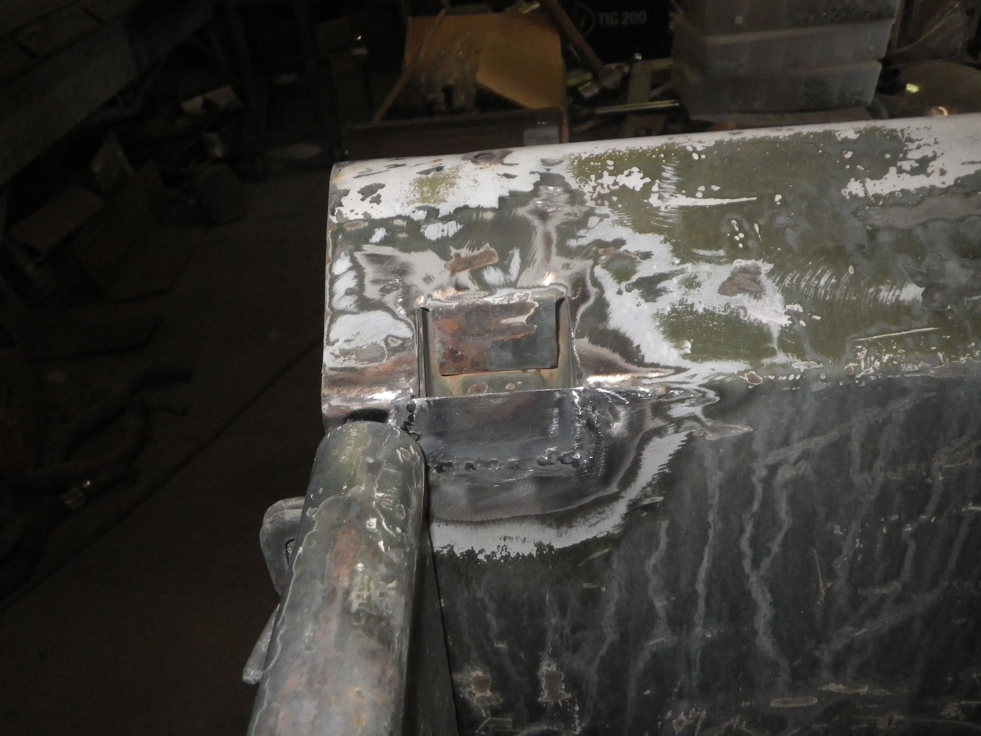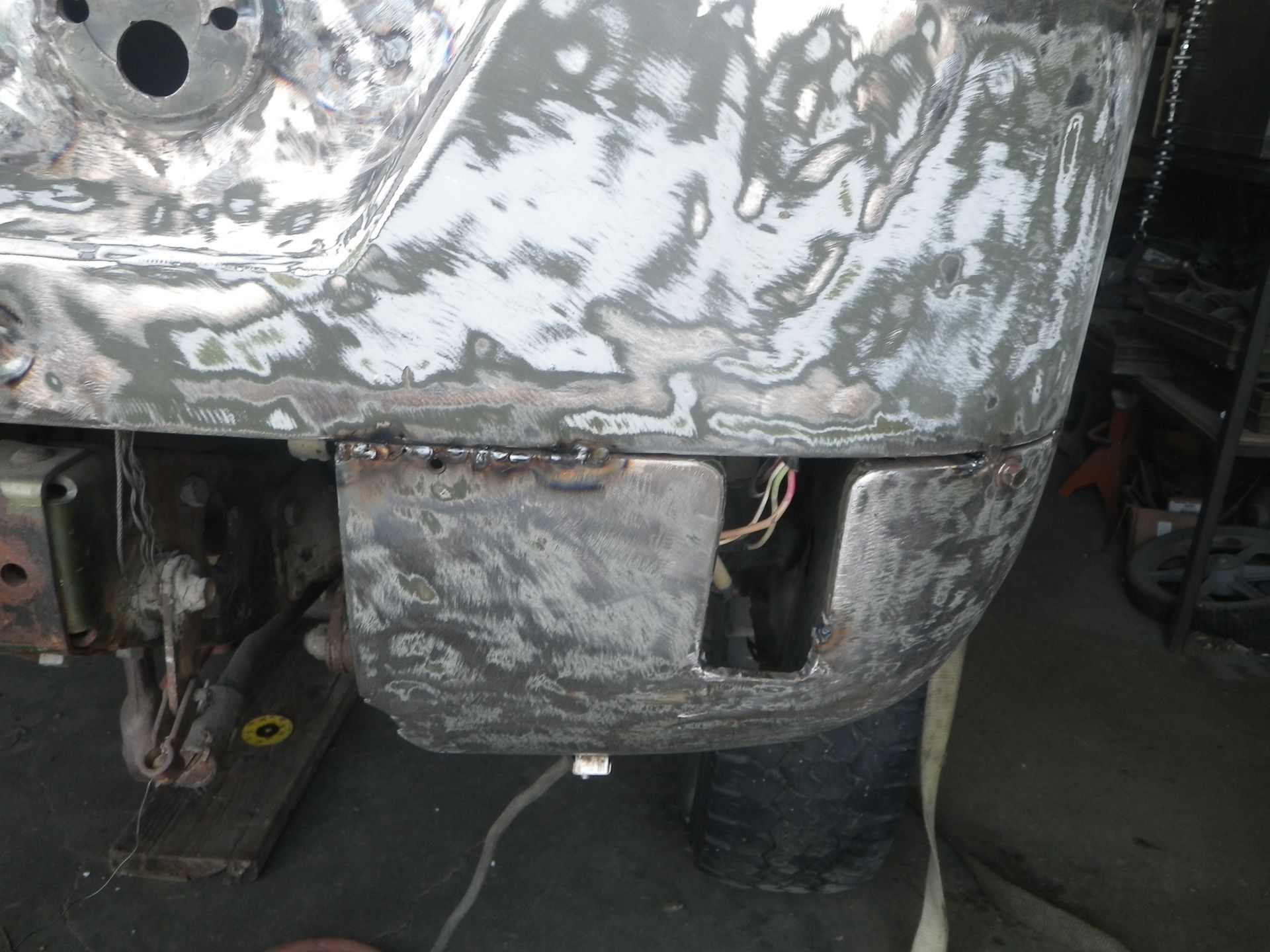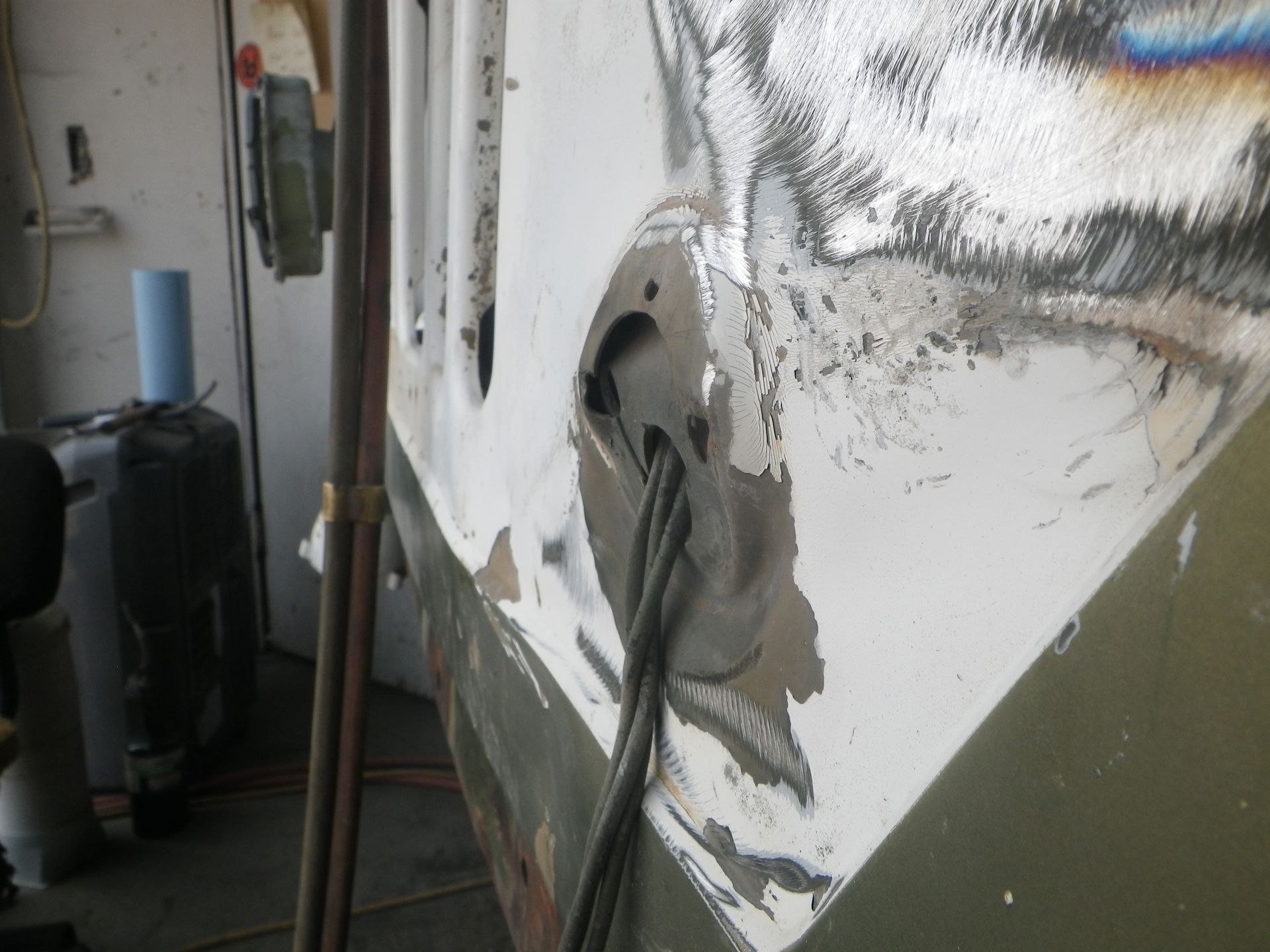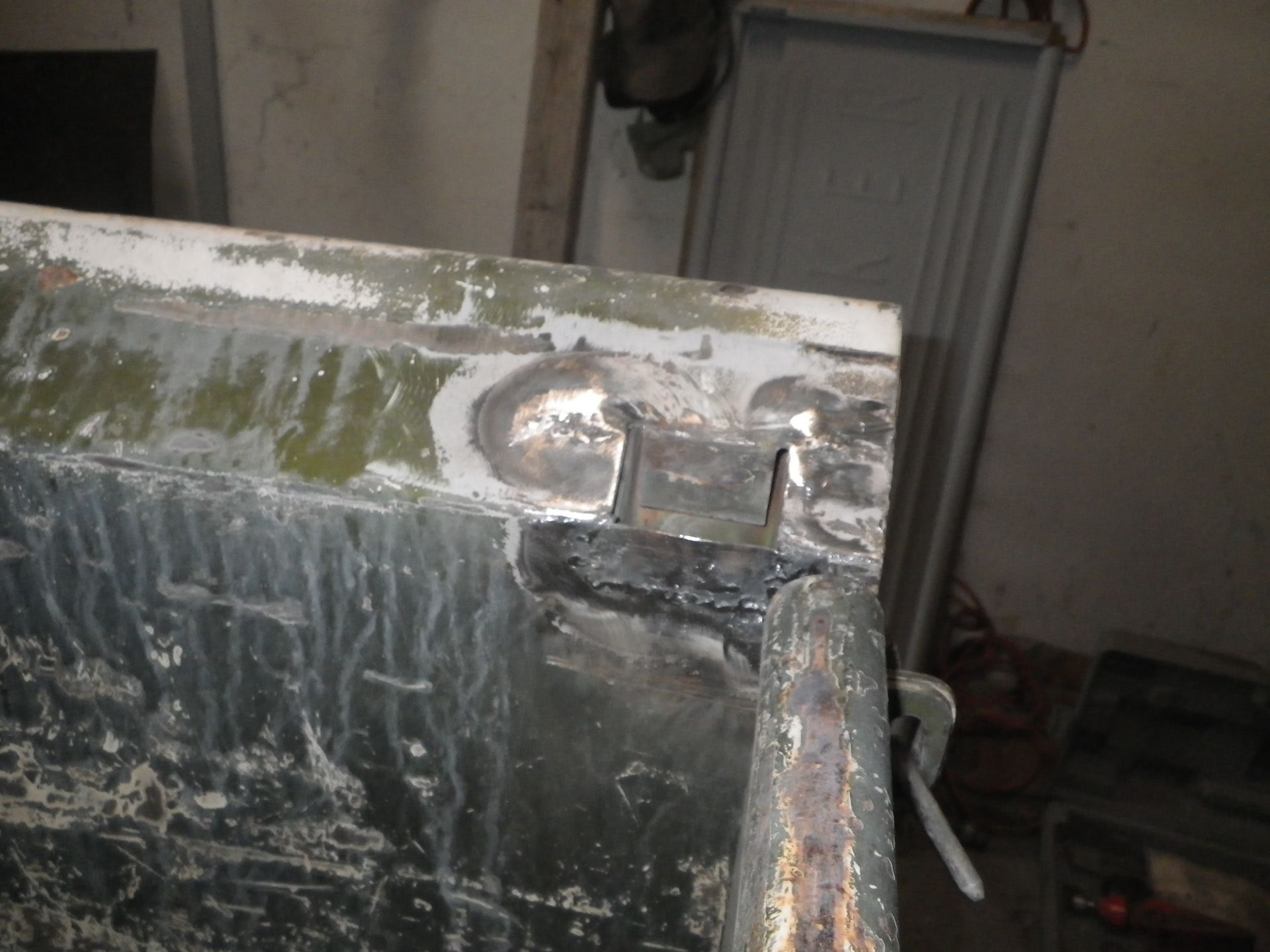 3 post holes with chunks missing.. will square up the holes and weld new pieces in.