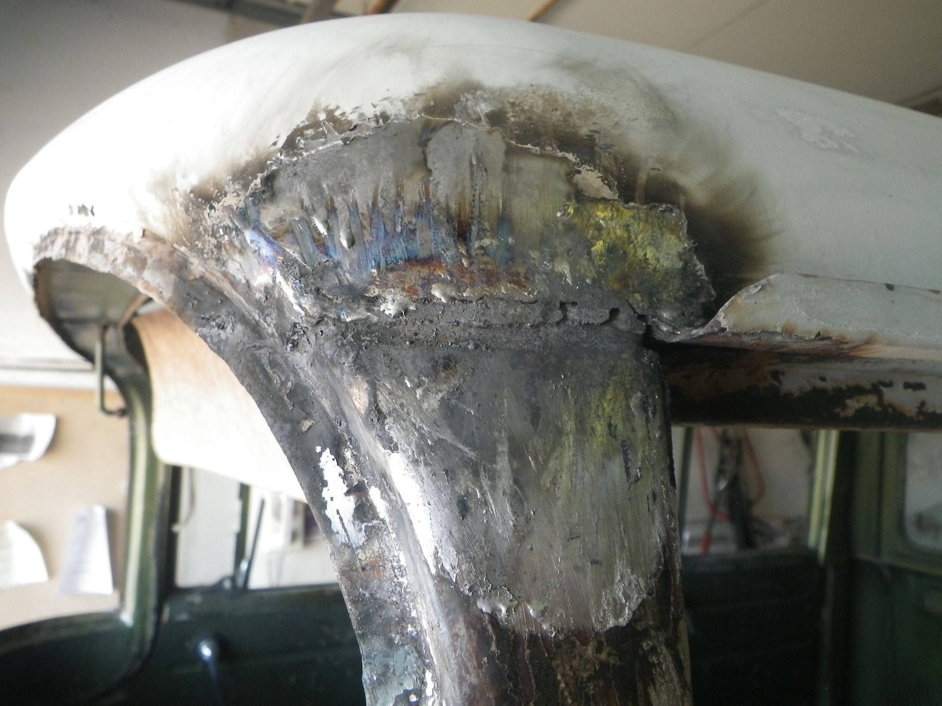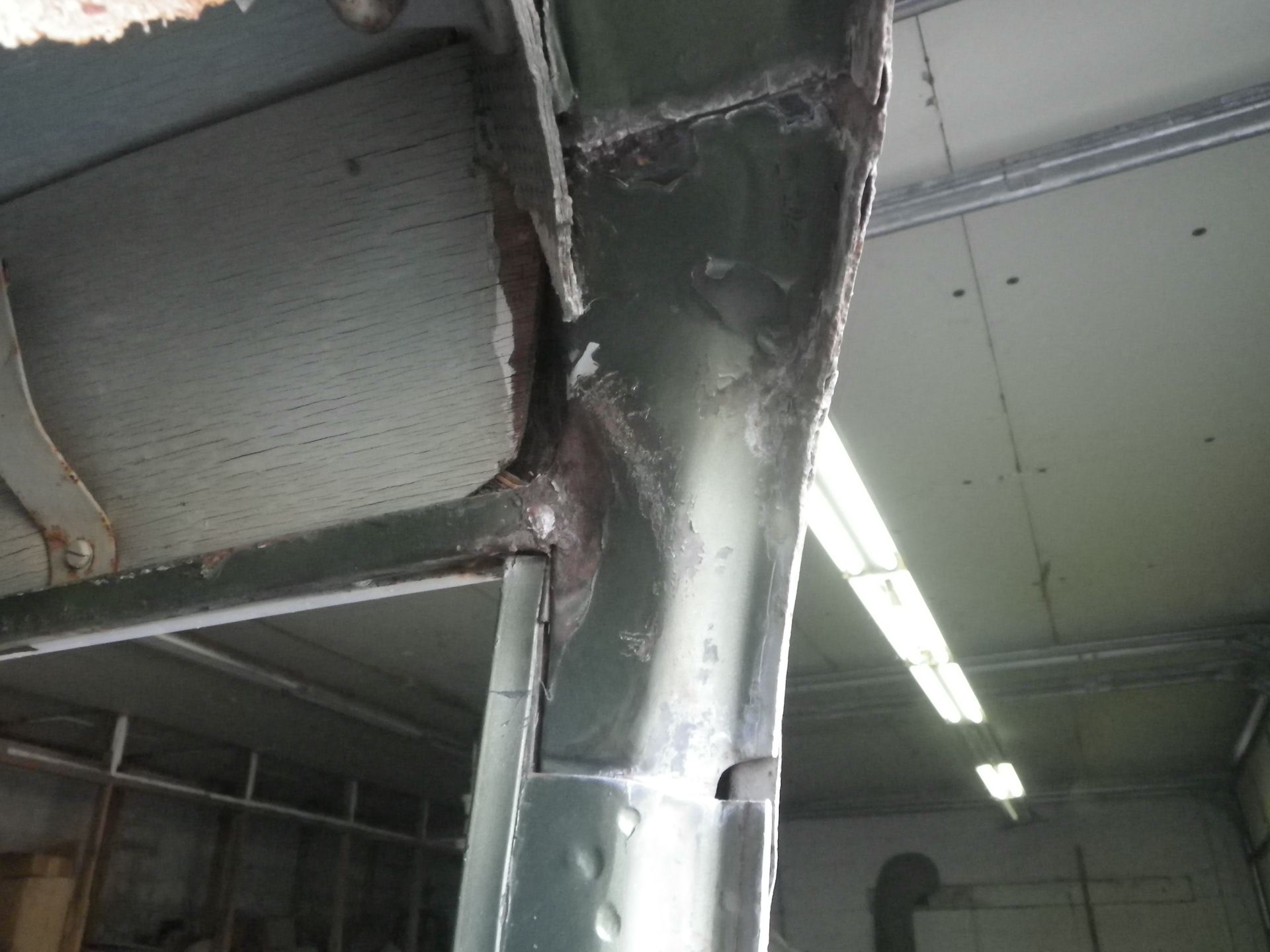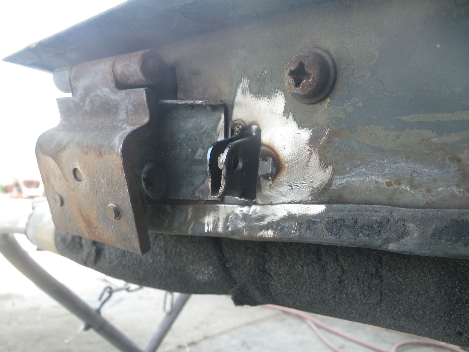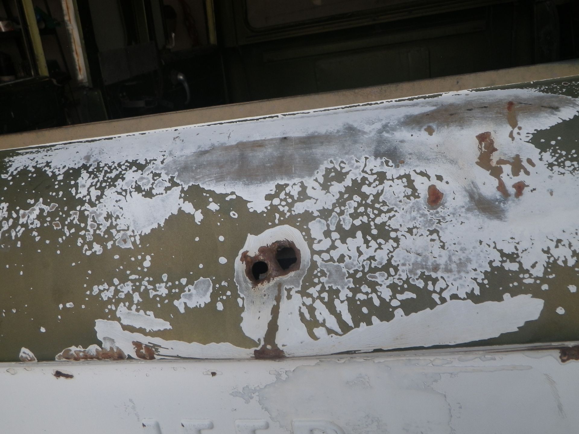 3 post holes with chunks missing.. will square up the holes and weld new pieces in.