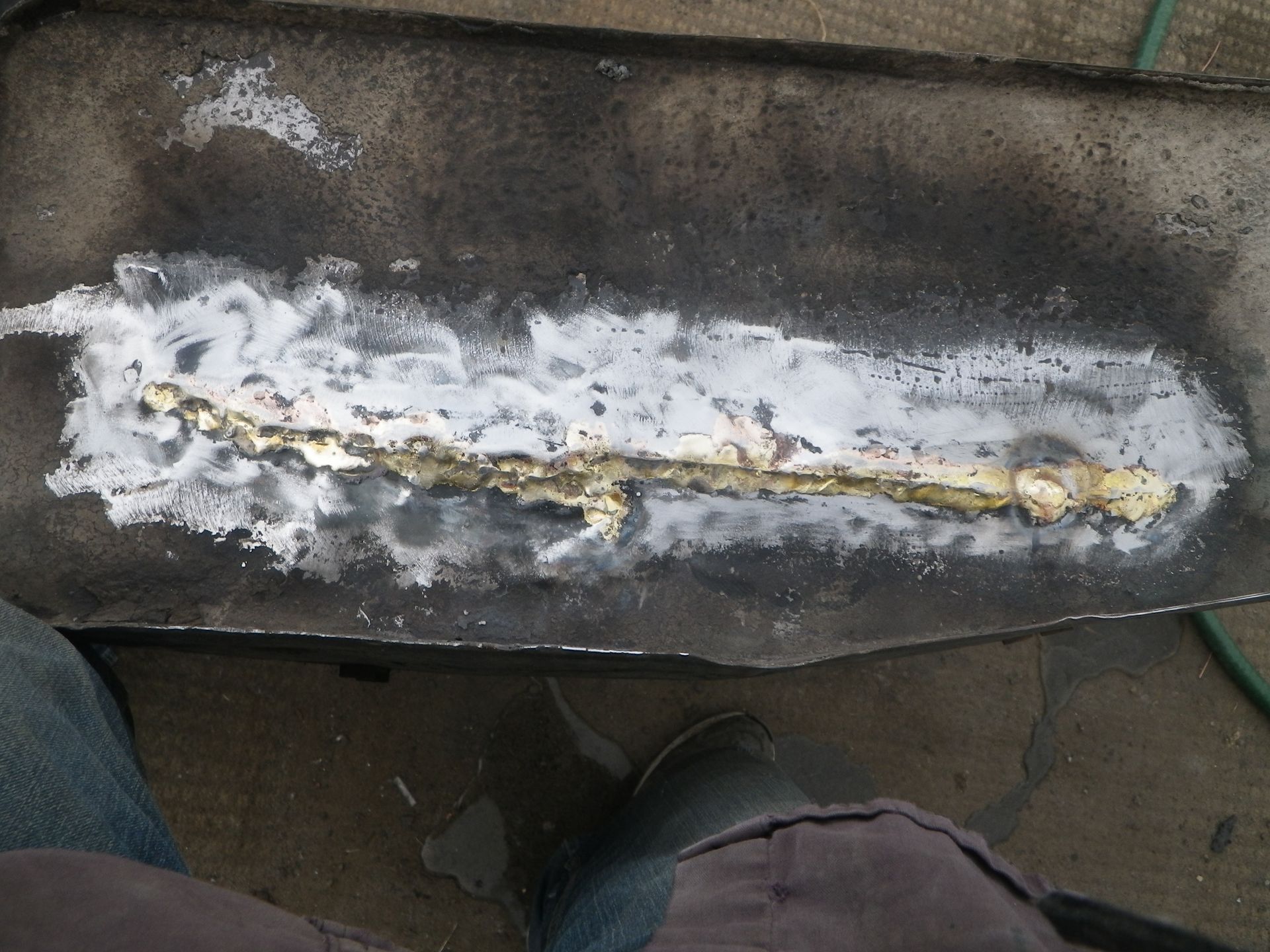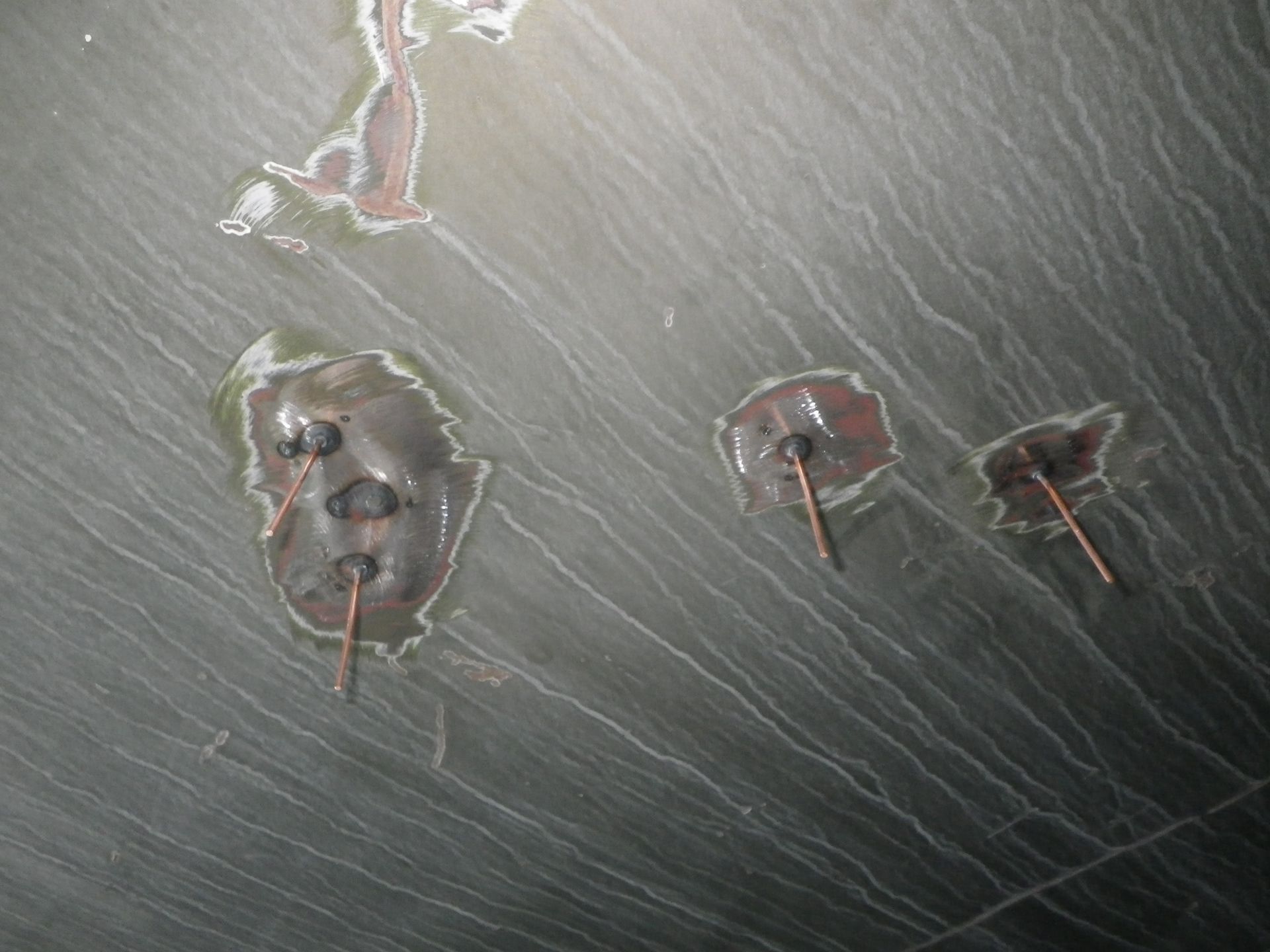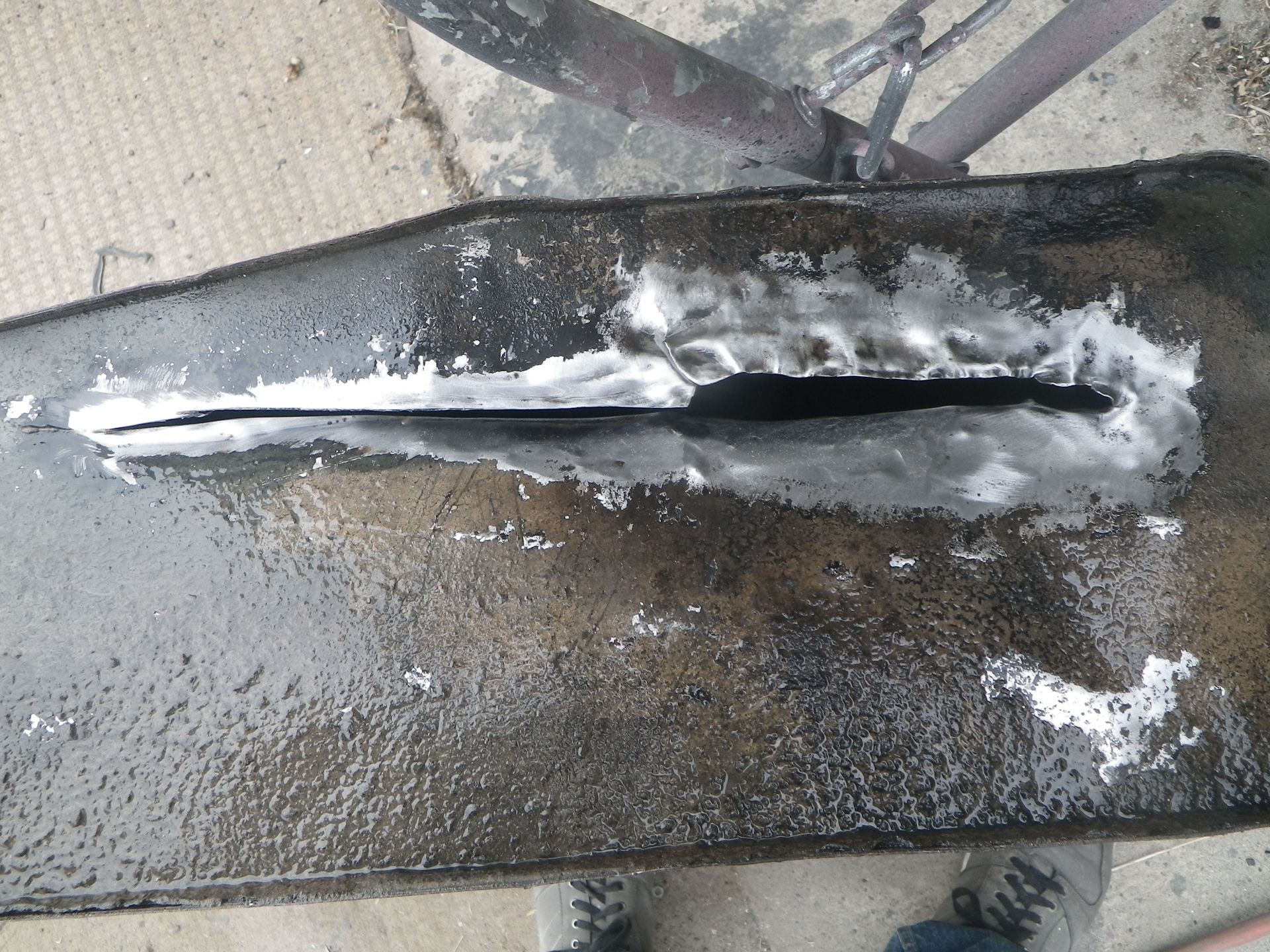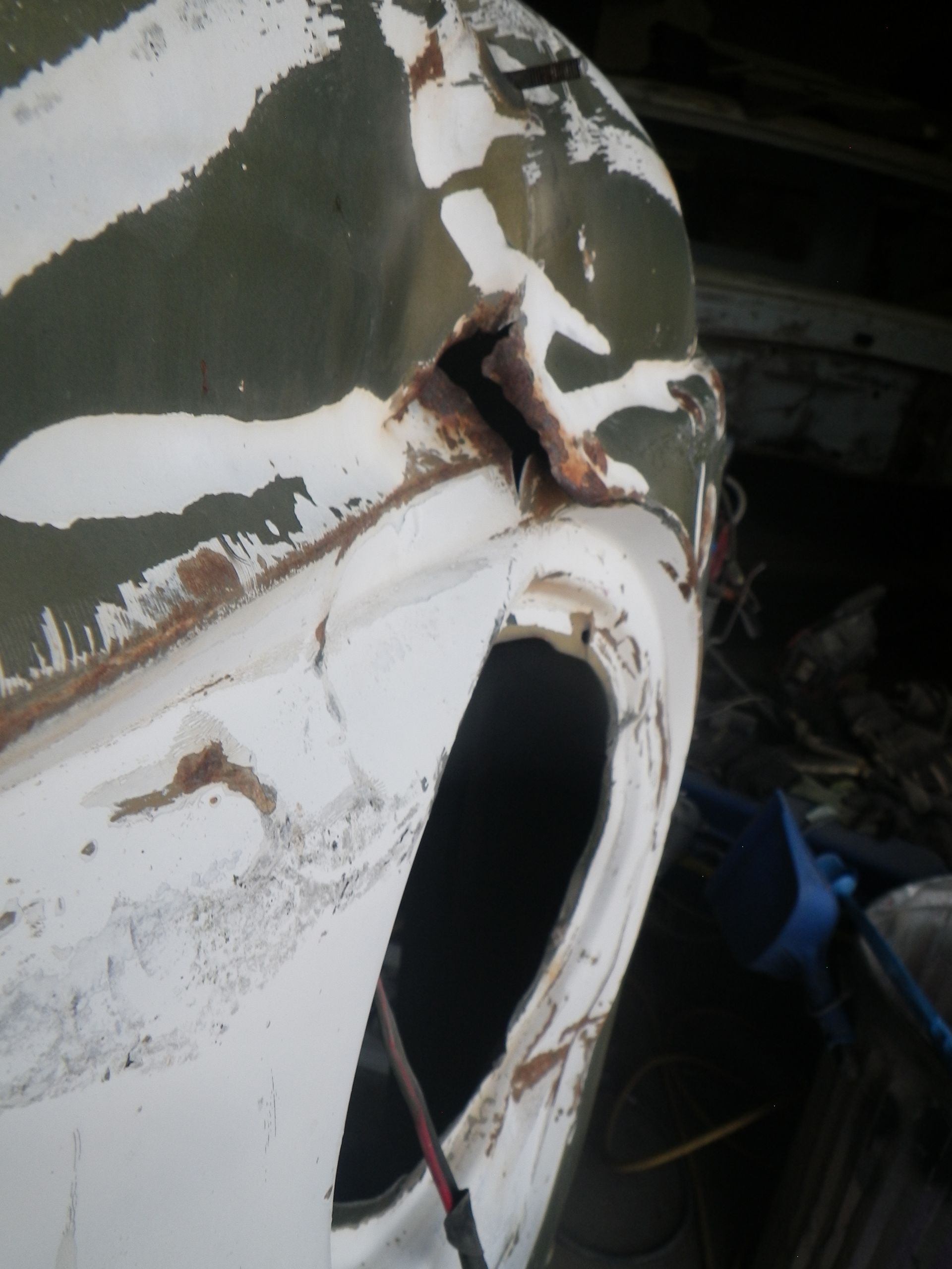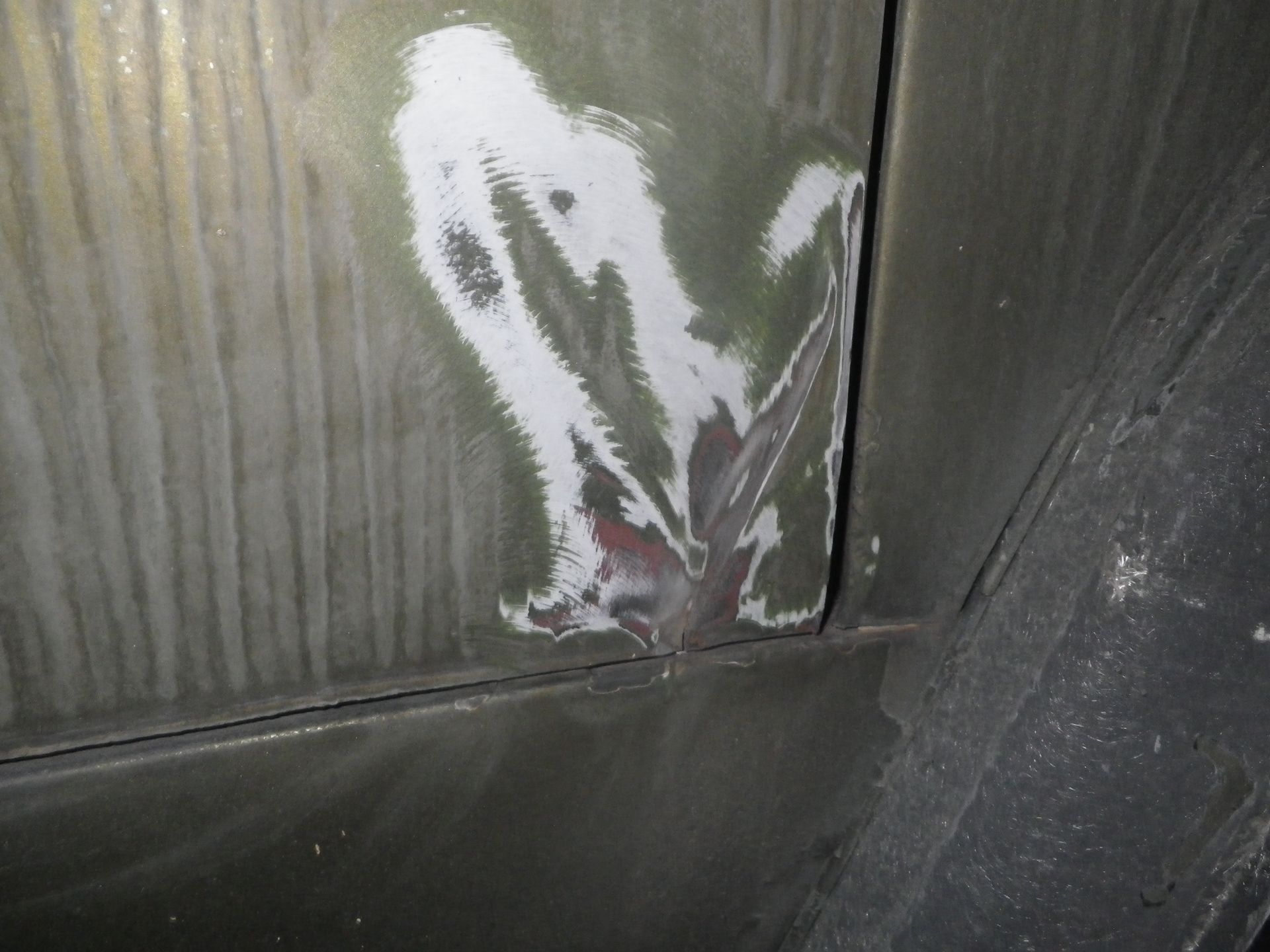 3 post holes with chunks missing.. will square up the holes and weld new pieces in.