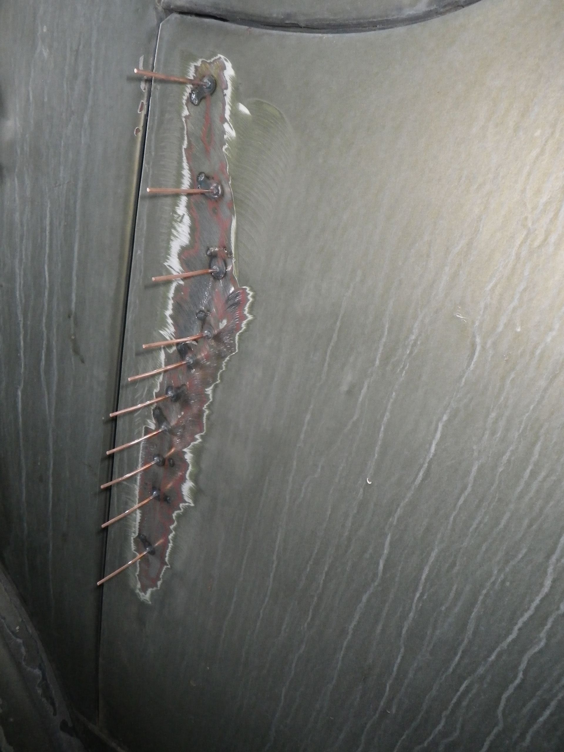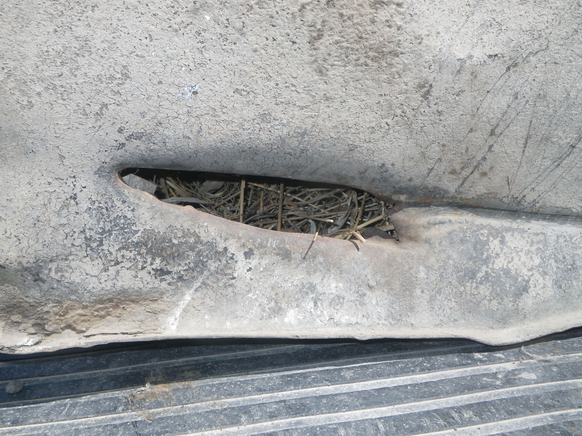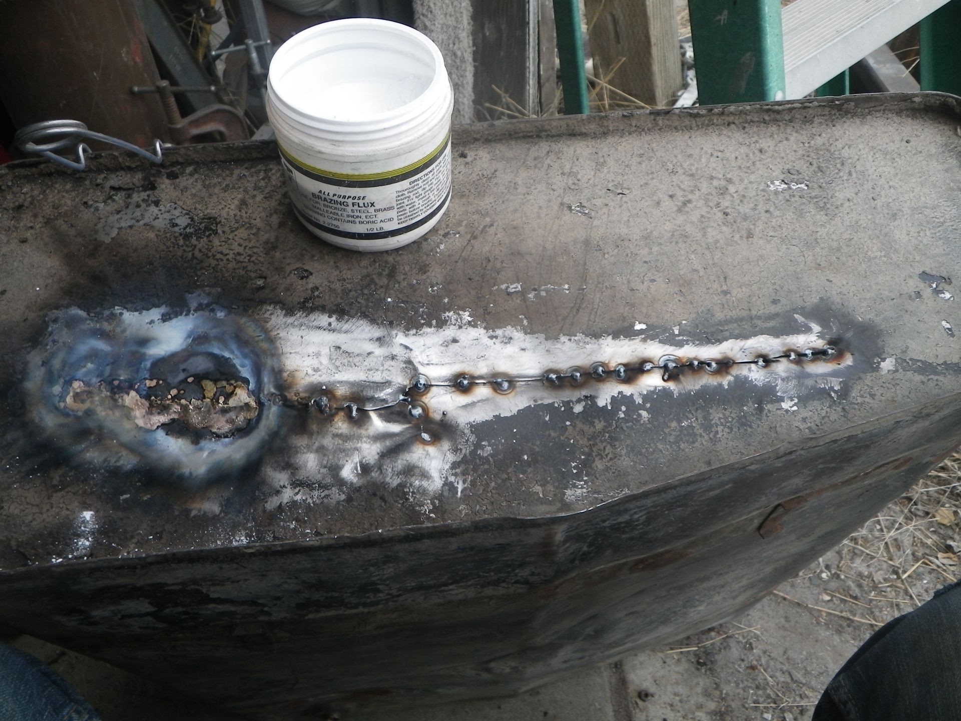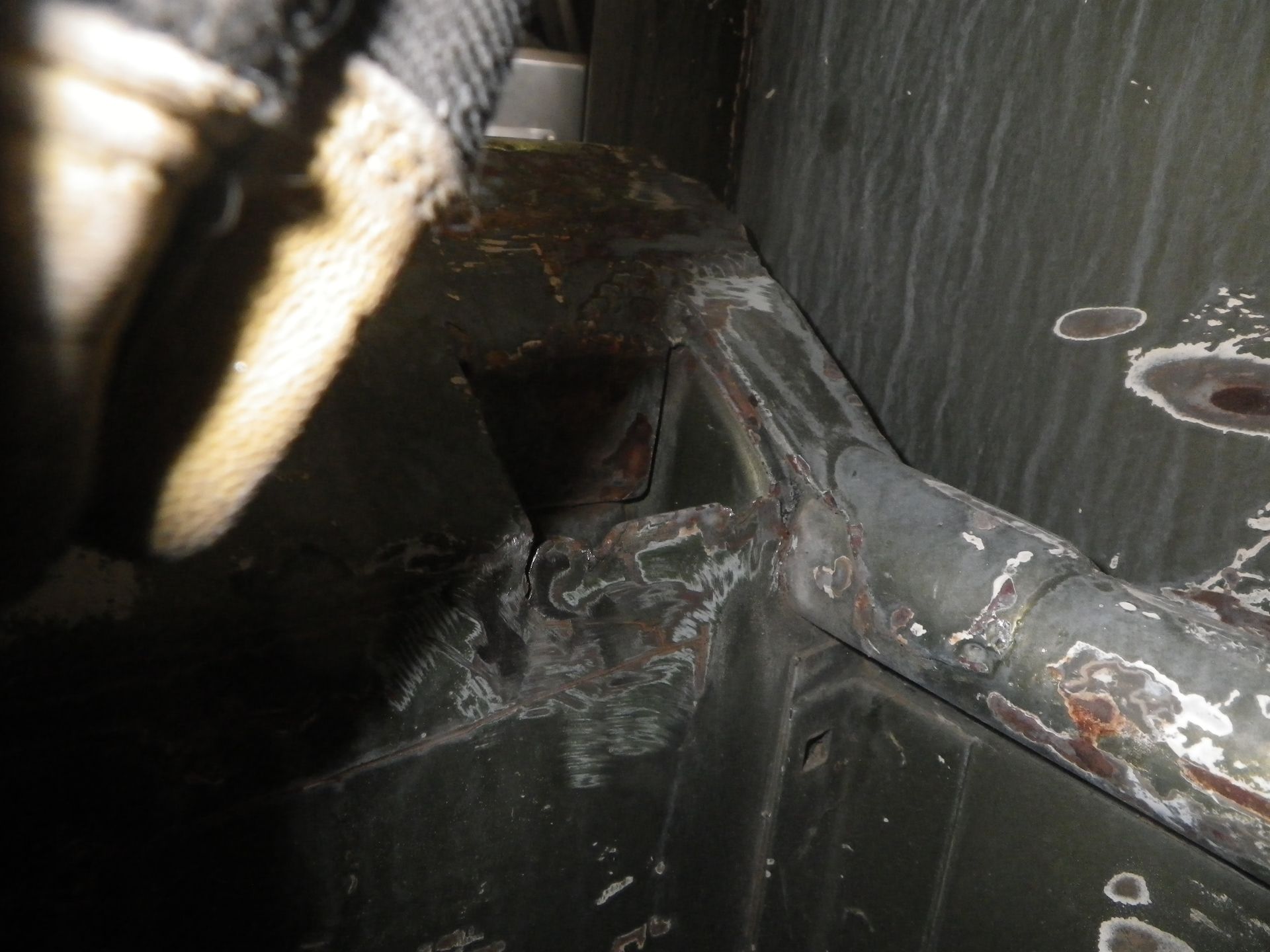 3 post holes with chunks missing.. will square up the holes and weld new pieces in.