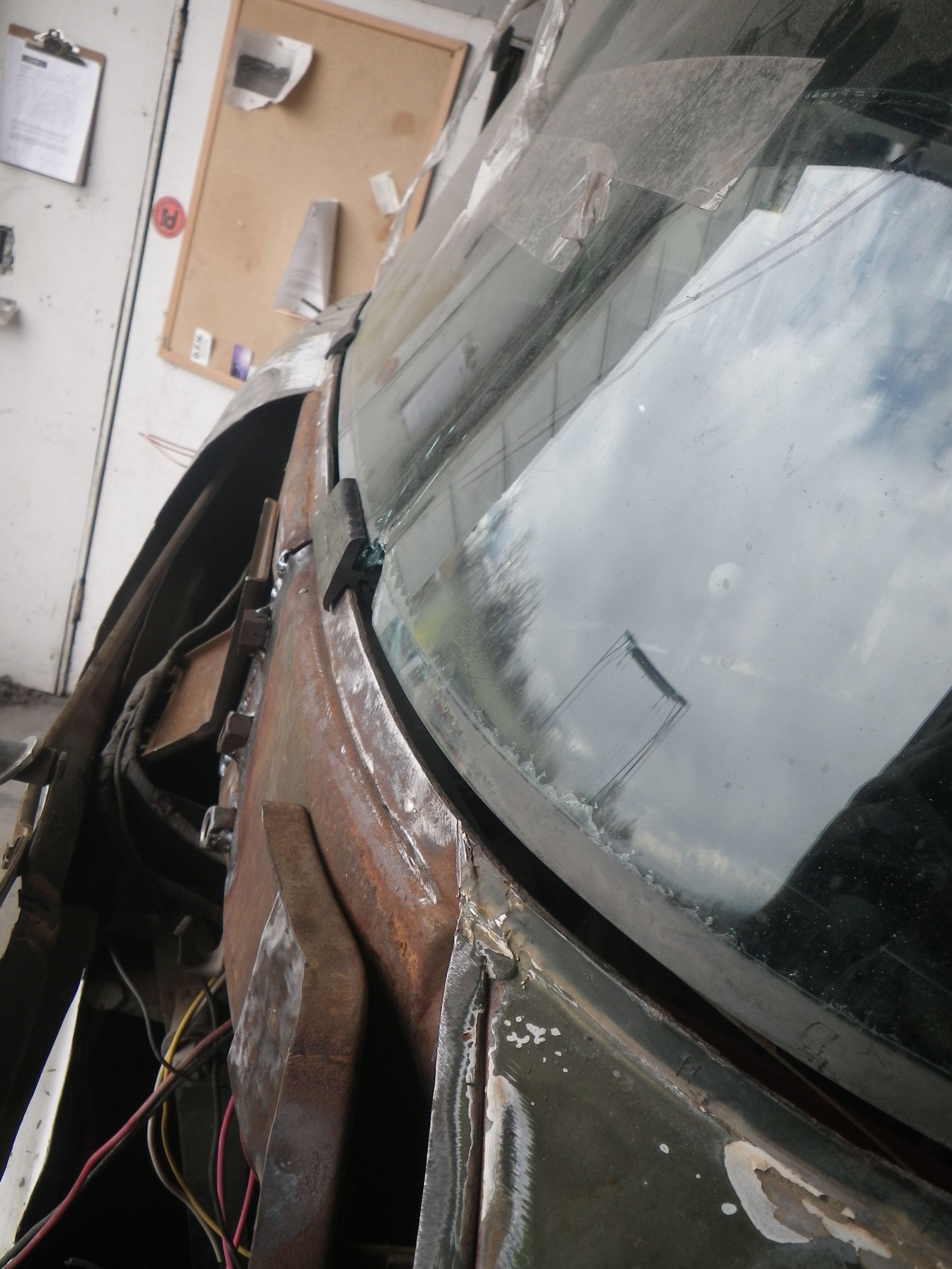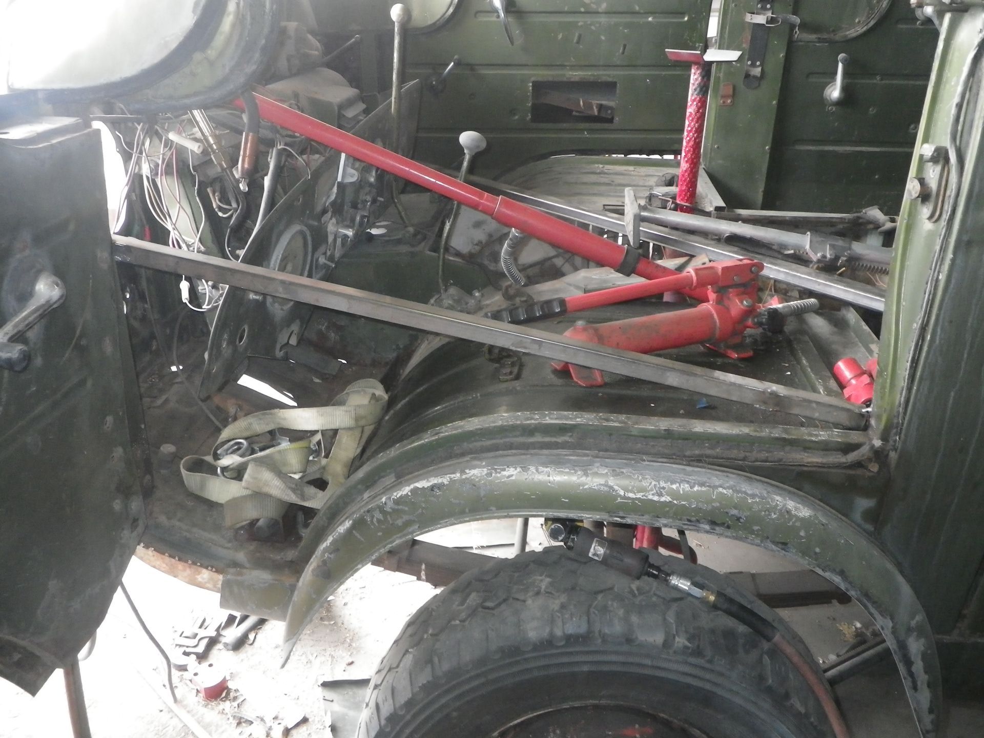 add pressure to get the door gap right, then weld brace to hold it while adding more pressure to get the windshield gap right.