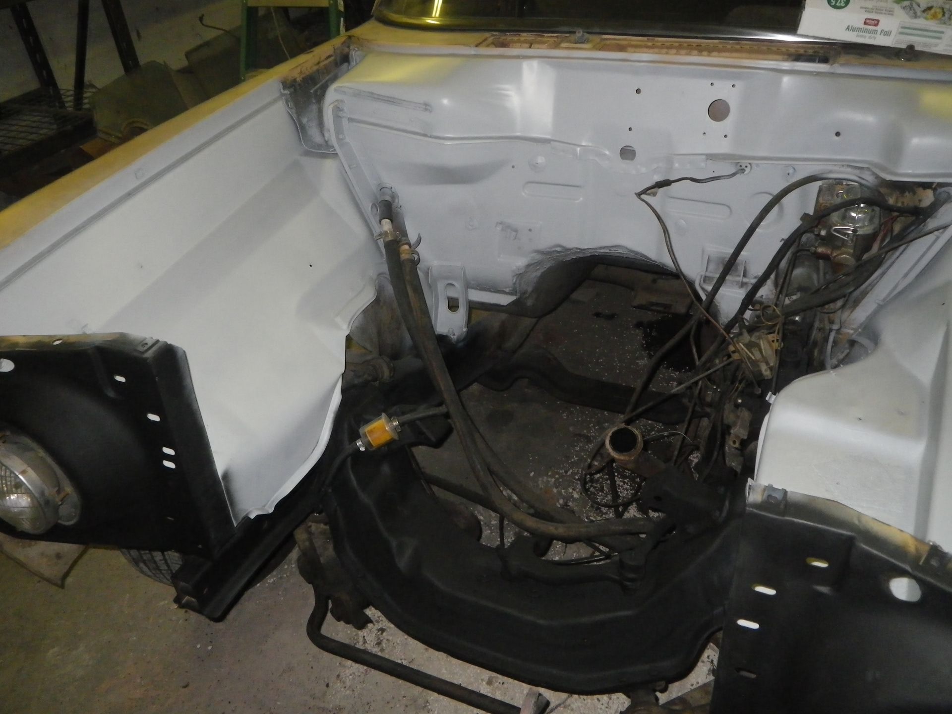 Removing brown paint to reveal original tan/cream. Brake system is completely rebuilt.