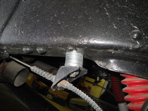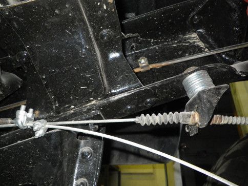 Will remove stack of washers from emergency brake cable mounts, build new bracket to keep cables from rubbing frame.