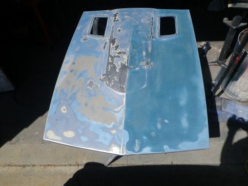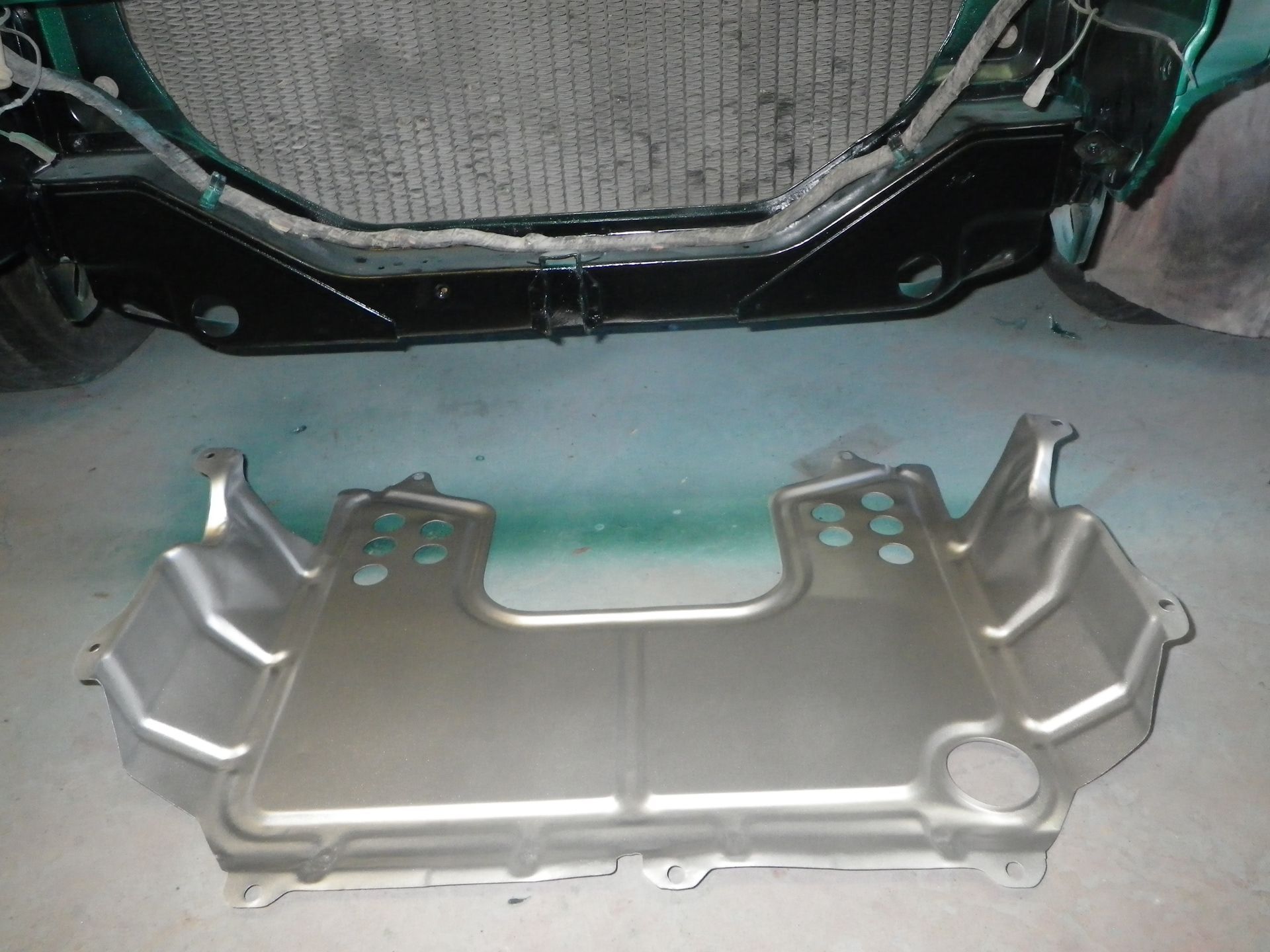 Lower shield cleaned, straightened, painted and ready to install.