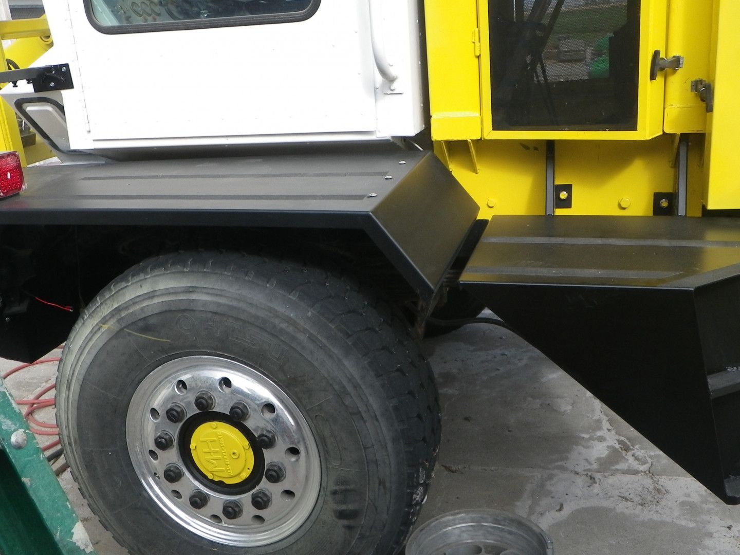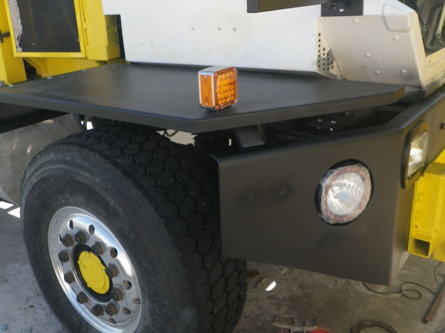 front fenders modified to line up with bumper, fabricated braces, painted